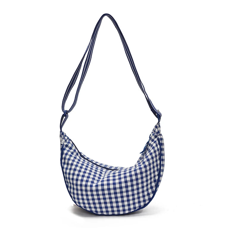 Checkered Nylon Crescent Hobos Shoulder Purse for Women